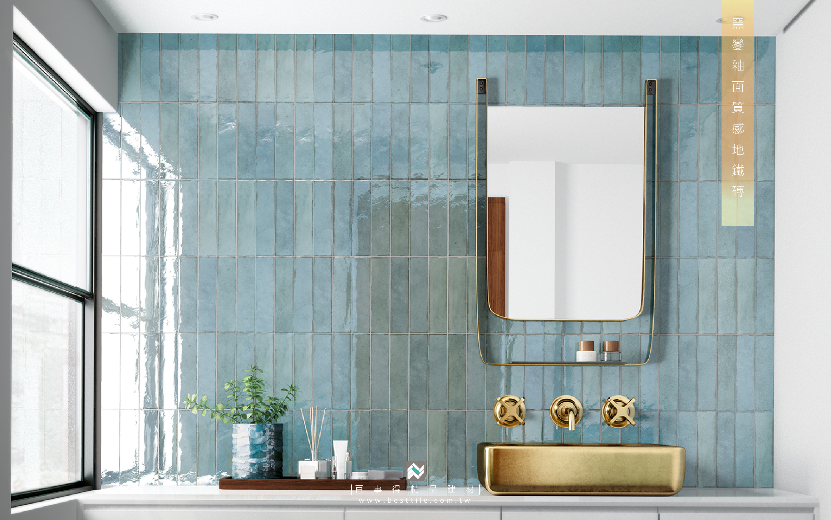 非常適合改善狹長或採光不足的浴室。值得一提的是,浴室使用窯變磚並不影響其清潔便利性——