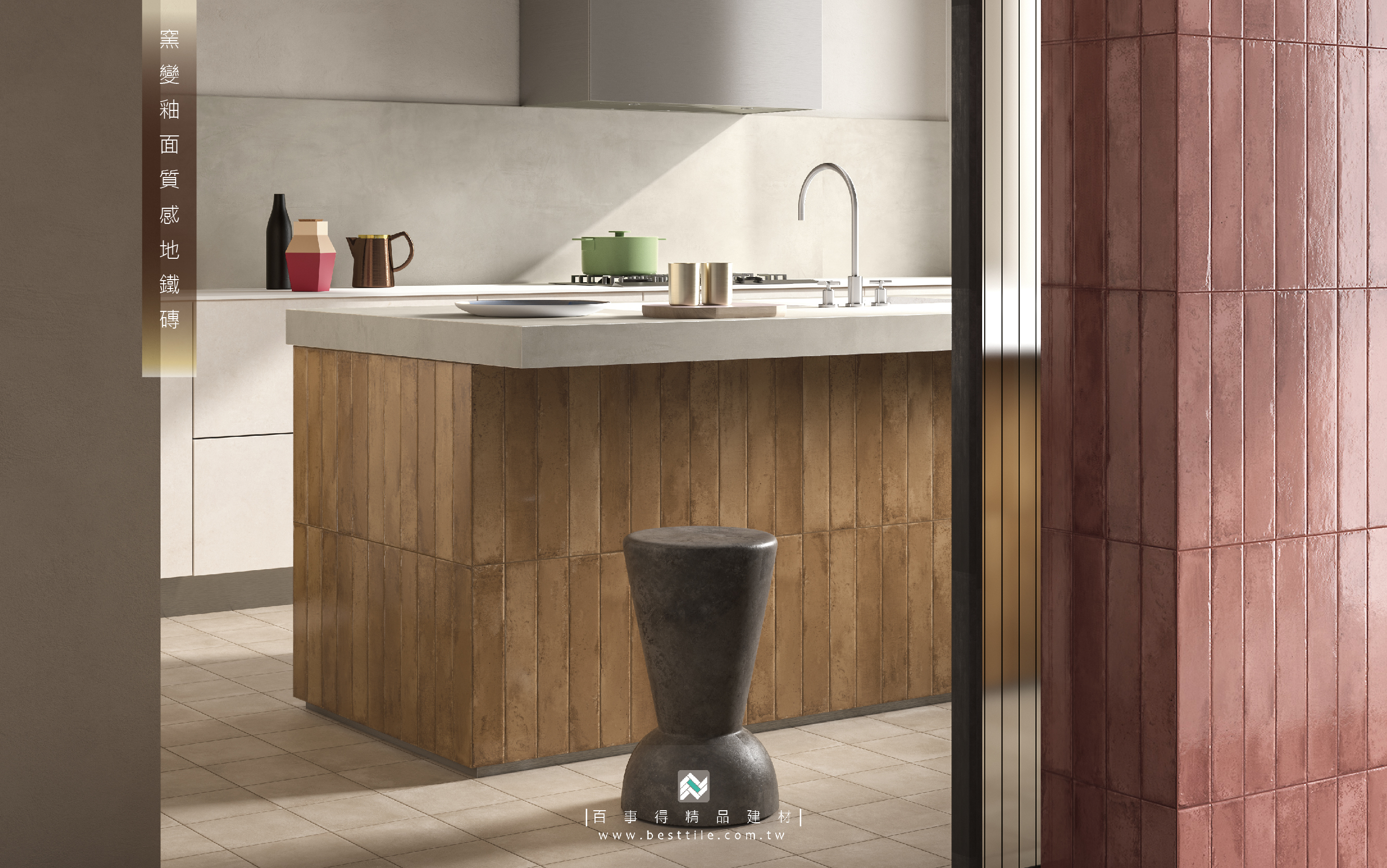 並搭配同系列的立體磚窯變磚,堆疊出層次感與懷舊氛圍。