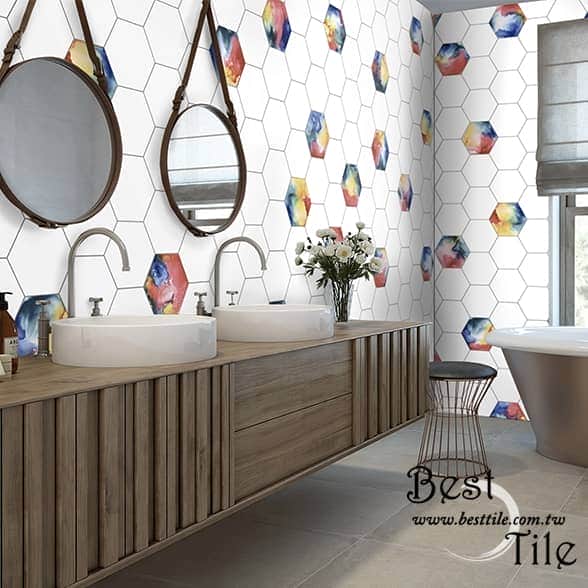 ▲六角磚,幾何、六角、蜂巢,現代風、工業風,咖啡廳、特殊造型磚、花磚