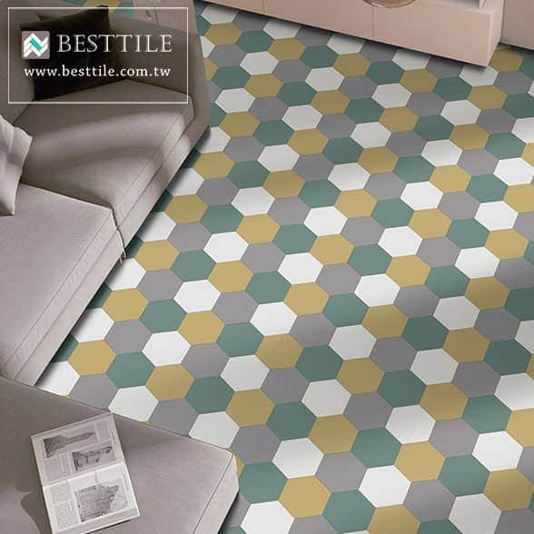 【 炫目 飽和色調繽紛六角磚 】