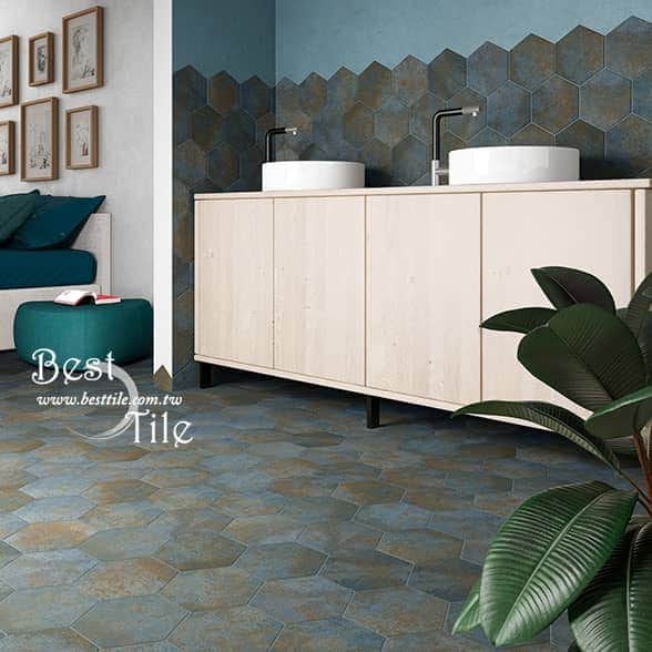 【 斜角巷 刷舊面感金屬六角磚 】