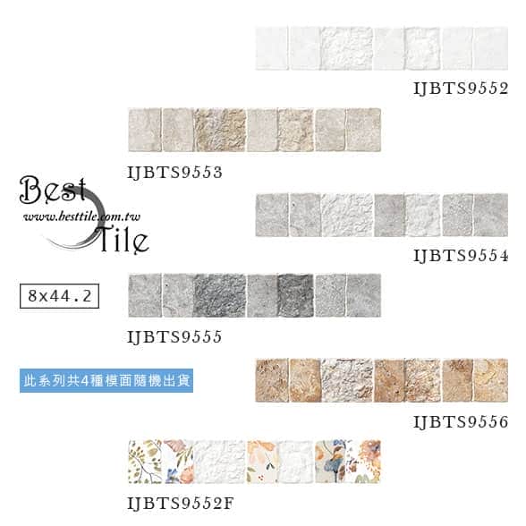 IJBTS9552 - 月牙白 IJBTS9553 - 夕陽米 IJBTS9554 - 鐵石灰 IJBTS9555 - 日蝕灰 IJBTS9556 - 沙漠棕 IJBTS9552F - 花卉(花磚) ▲電視牆,文化石,外牆磚,復古磚,工業風,二丁掛磁磚,老屋整建,外牆拉皮,防水,主牆。