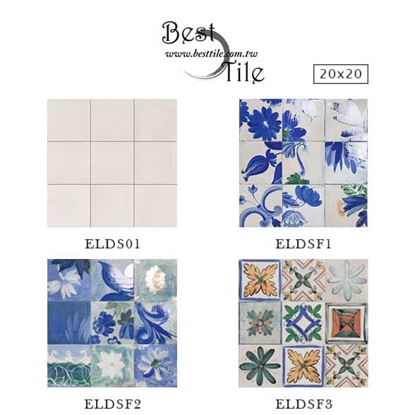 ELDS01 - 珍珠白 ELDSF1 - 花磚 A 圖 案 隨 機 出 貨 ELDSF2 - 花磚 B 圖 案 隨 機 出 貨 ELDSF3 - 花磚 C 圖 案 隨 機 出 貨 ▲手工花磚、精緻花磚、典雅花磚,水泥花磚、拼圖花磚、玄關花磚、地毯花磚、幾何花磚,立體花磚、歐式古典花磚、西班牙鄉村花園。