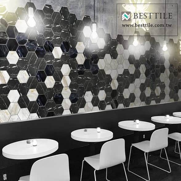 ▲六角磚,幾何、六角、蜂巢,現代風、工業風,咖啡廳、特殊造型磚、花磚