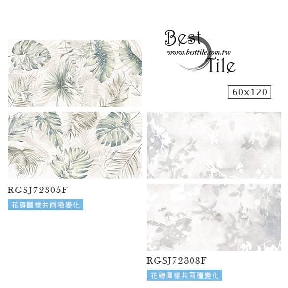 RGSJ72305F - 葉子花磚 (淺綠) 霧 面-共兩種圖樣變化 RGSJ72308F - 植物花磚 (藍灰) 霧 面-共兩種圖樣變化 ▲電視牆、主牆、浴室廁所、戶外地板、牆壁、公共空間、客廳、臥房、餐廳、廚房、衛浴、戶外牆、大理石、花崗石、板岩