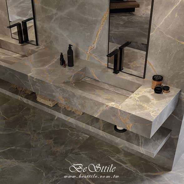 【 首璽 高級金絲紋灰色調大板磚 】