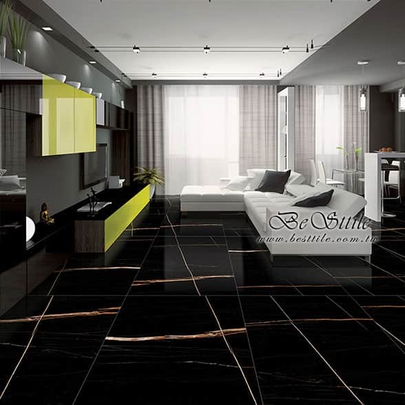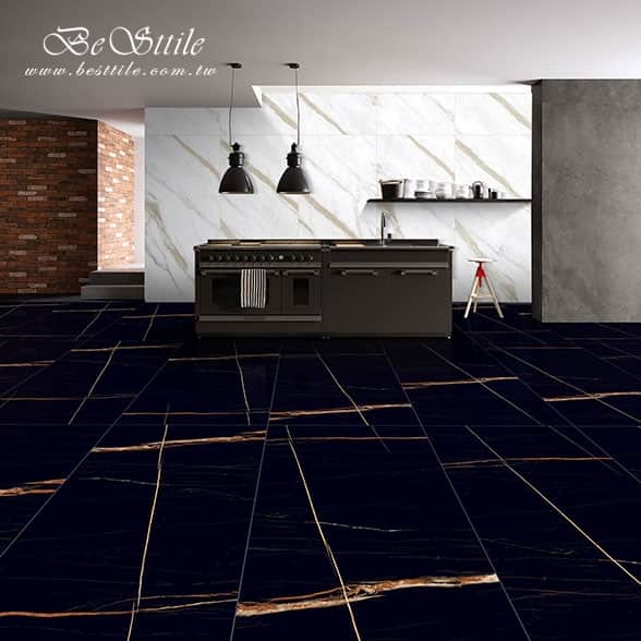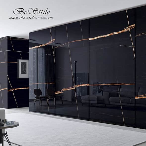 【 黑山脈 高級黑金調亮面大板磚 】