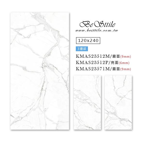 KMAS23512 - 雲朵白 (亮面-2連紋) KMAS23512M - 雲朵白 (霧面-3連紋) KMAS23512P - 雲朵白 (亮面-3連紋) KMAS23571M - 雲朵石 (霧面-3連紋) ▲電視牆、主牆、浴室廁所、戶外地板、牆壁、公共空間、客廳、臥房、餐廳、廚房、衛浴、戶外牆、大理石、花崗石、板岩