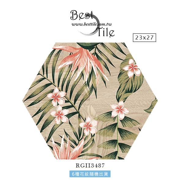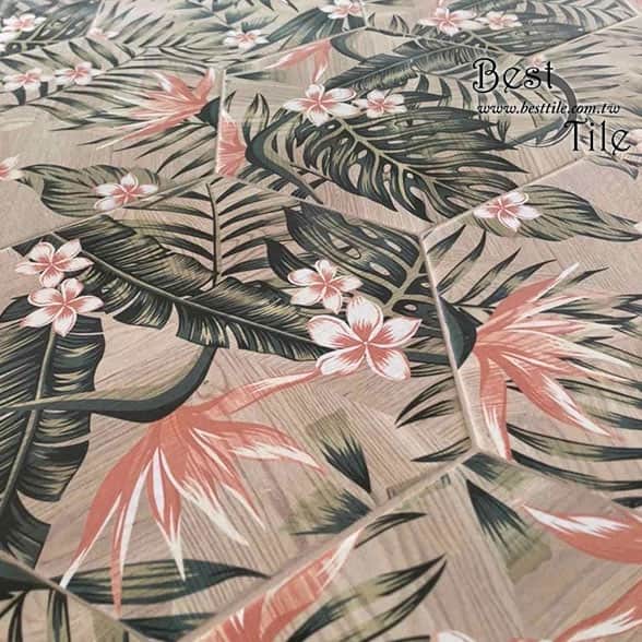 【 尋花之旅 木質紋路彩繪六角花磚 】