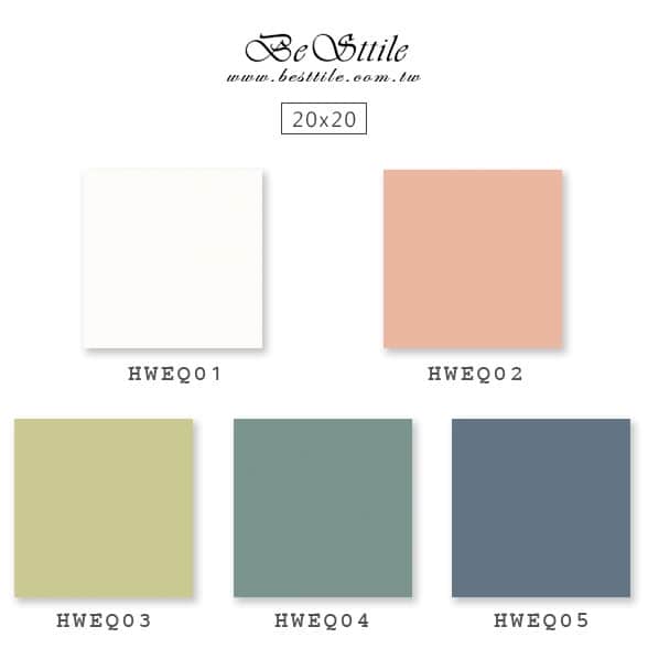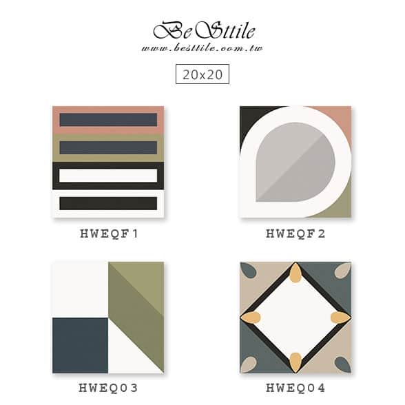 HWEQ01 - 絲路白 HWEQF1 - 幾何花磚A HWEQ02 - 櫻花粉 HWEQF2 - 幾何花磚B HWEQ03 - 青檸綠 HWEQF3 - 幾何花磚C HWEQ04 - 孔雀綠 HWEQF4 - 幾何花磚D HWEQ05 - 海水藍 ▲手工花磚、精緻花磚、典雅花磚,水泥花磚、拼圖花磚、玄關花磚、地毯花磚、幾何花磚,立體花磚、歐式古典花磚、西班牙鄉村花園。