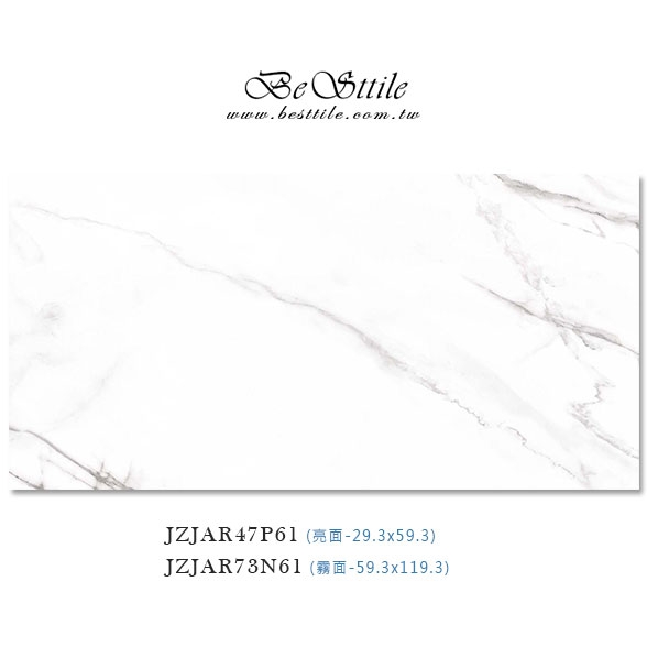 【29.3x59.3】 JZJAR47P61 - 卡拉拉 (亮面) 【59.3x119.3】 JZJAR73N61 - 卡拉拉 (霧面) ▲電視牆、主牆、浴室廁所、戶外地板、牆壁、公共空間、客廳、臥房、餐廳、廚房、衛浴、戶外牆、大理石、花崗石、板岩