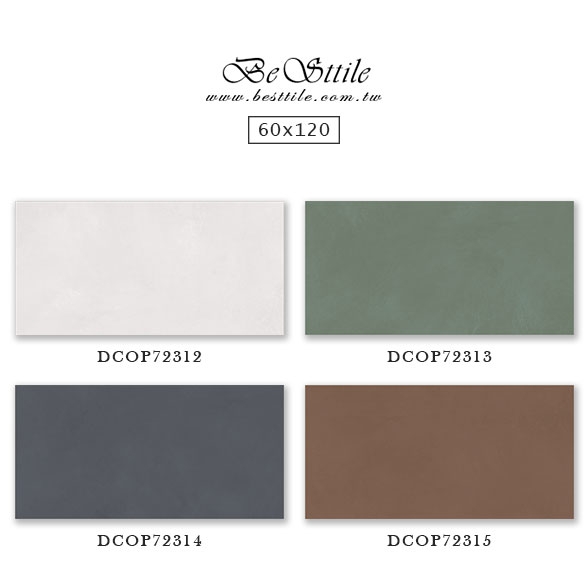 DCOP72312 - 糖霜白 DCOP72313 - 抹茶綠 DCOP72314 - 牛仔藍 DCOP72315 - 紅土棕 ▲電視牆、主牆、浴室廁所、戶外地板、牆壁、公共空間、客廳、臥房、餐廳、廚房、衛浴、戶外牆、大理石、花崗石、板岩