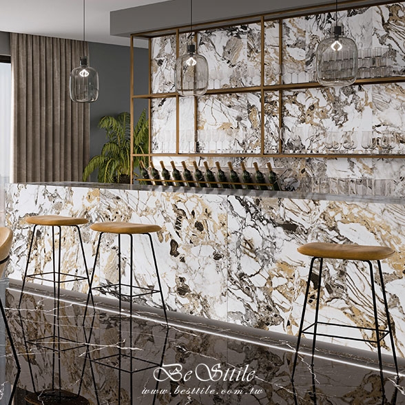 【 傾心 金蔥黃白石紋大板磚 】