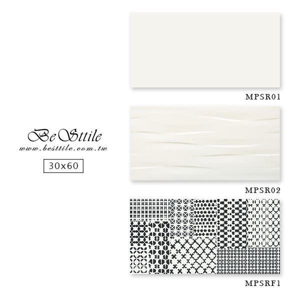 MPSR01 - 雲朵白 MPSR02 - 雲朵白(立體波浪) MPSRF1 - 黑白拼花 ▲手工花磚、精緻花磚、典雅花磚,水泥花磚、拼圖花磚、玄關花磚、地毯花磚、幾何花磚,立體花磚、歐式古典花磚、西班牙鄉村花園。