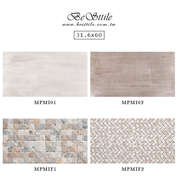 【31.6x60】 MPMI01 - 雲煙白 MPMI02 - 奶茶棕 MPMIF1 - 立體花格 MPMIF2 - 編織花磚 【45x45】 MPMIS1 - 雲煙白 MPMIS2 - 奶茶棕 ▲手工花磚、精緻花磚、典雅花磚,水泥花磚、拼圖花磚、玄關花磚、地毯花磚、幾何花磚,立體花磚、歐式古典花磚、西班牙鄉村花園。