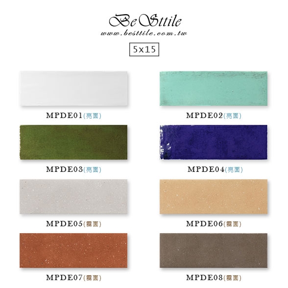 MPDE02 - 湖畔綠 (亮面) MPDE06 - 淺培米 (霧面)