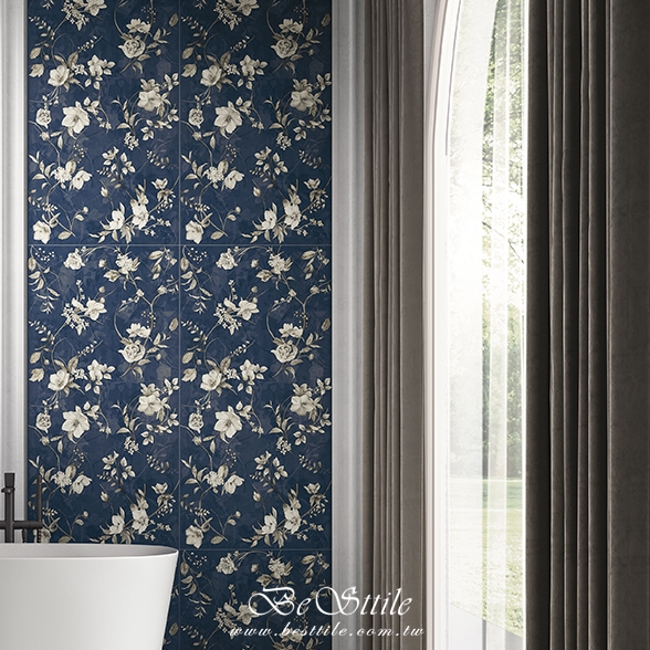 【 花氛 高雅藍底質感小白花磚 】