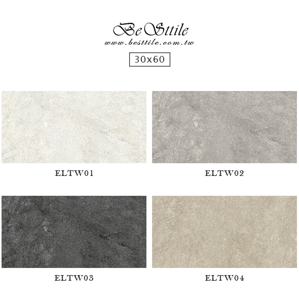 ELTW01 - 雲畫白 ELTW02 - 煙幕灰 ELTW03 - 石洞黑 ELTW04 - 沙漠米 ▲電視牆、主牆、浴室廁所、戶外地板、牆壁、公共空間、客廳、臥房、餐廳、廚房、衛浴、戶外牆、大理石、花崗石、板岩