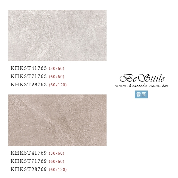 【30x60】 KHKST41763 - 風沙米灰 KHKST41769 - 沙漠米棕 【60x60】 KHKST71763 - 風沙米灰 KHKST71769 - 沙漠米棕 【60x120】 KHKST23763 - 風沙米灰 KHKST23769 - 沙漠米棕 ▲電視牆、主牆、浴室廁所、戶外地板、牆壁、公共空間、客廳、臥房、餐廳、廚房、衛浴、戶外牆、大理石、花崗石、板岩