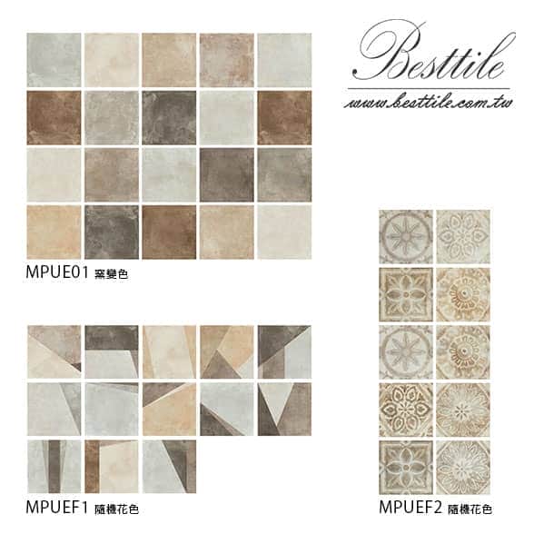 MPUE01 - 混色 MPUEF1 - 花磚A 圖 案 隨 機 出 貨 MPUEF2 - 花磚B 圖 案 隨 機 出 貨 ▲手工花磚、精緻花磚、典雅花磚,水泥花磚、拼圖花磚、玄關花磚、地毯花磚、幾何花磚,立體花磚、歐式古典花磚、西班牙鄉村花園。