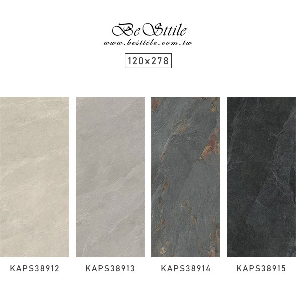 KASP38912 - 月光黃 KASP38913 - 時光灰 KASP38914 - 金箔灰 KASP38915 - 時空黑 ▲電視牆、主牆、浴室廁所、戶外地板、牆壁、公共空間、客廳、臥房、餐廳、廚房、衛浴、戶外牆、大理石、花崗石、板岩